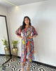 A pink co-ord set that exudes a gentle and calming color, creating a soothing visual appeal. This ensemble beautifully showcases stunning floral embroidery, gracefully adorning the collars and extending along the shoulder area, continuing onto the entire sleeve. The intricate embroidery adds a touch of elegance, elevating the overall look. Embrace the enchanting combination of the serene hue and exquisite detailing.